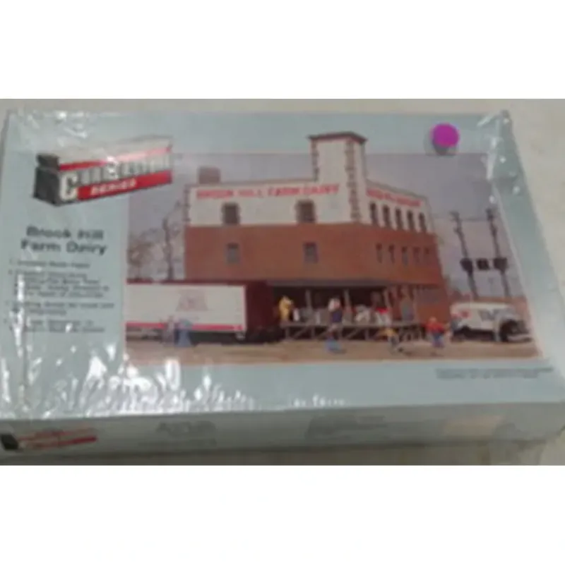 The Walthers Cornerstone HO Scale Brook Hill Farm Dairy is a three-story brick-and-stucco factory building that has plenty of uses on any steam or diesel-era layout. Featuring loading docks for railroad and truck shipments this classic building also includes colorful sign decals and milk cans for added dock detailing. Parts come molded in three colors plus clear plastic. The finished Brook Hill Farm Dairy model has a footprint of: 7-3/8 x 7-1/4 18.7 x 18.4cm