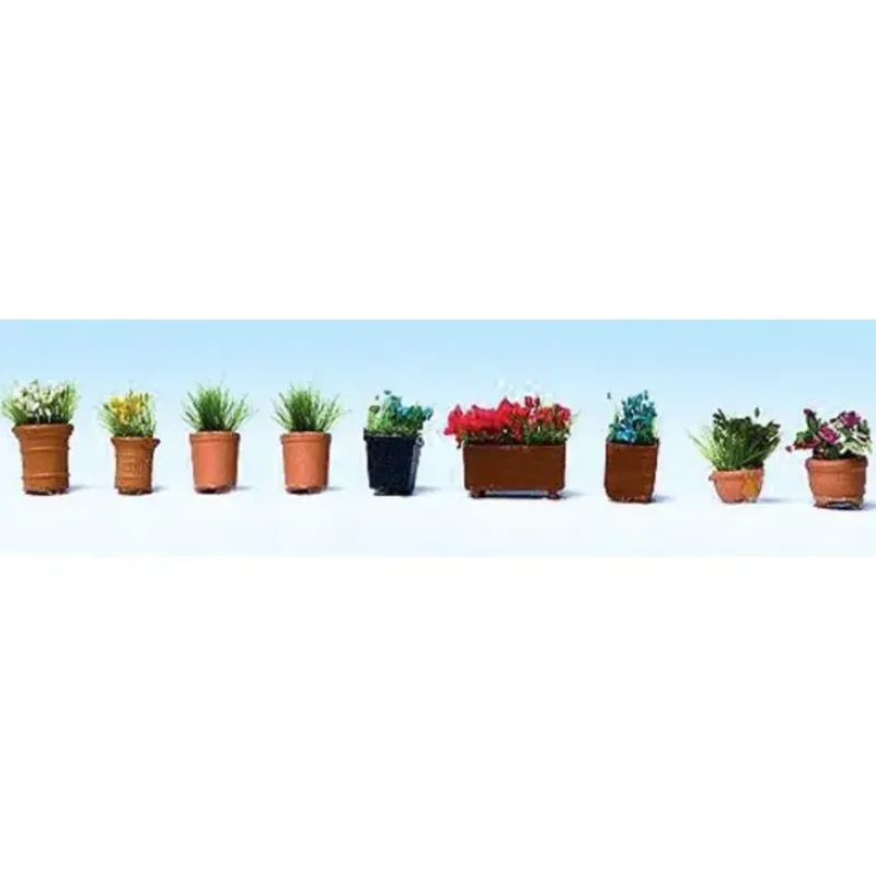 This is a Walthers 949-1082 HO Potted Flowers – Botanicals pkg(9). Instant Detail for Patio or Garden, Hand Painted, Fully Assembled, Layout-Ready, Great Detail for Structures,Parks, Gardens & More, and Laser-Cut Paper & Foam for Scale Appearance.
