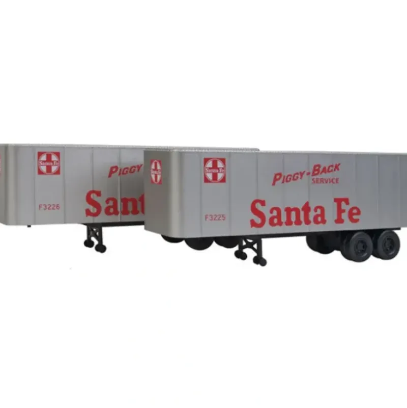 This is a Walthers 949-2356 HO Scale 32′ Trailer 2-Pack – Assembled Santa Fe * Must-have for Ealry Piggyback Srvice * Standard US Trailer in 1940s and 1950s * Detail Period Highways & Loading Docks * Colorful, Authentic Schemes In the 1950s, piggyback service was used for LCL shipments traveling a short distance. These trailers are perfect for loading earlier 40 and 50′ flats converted for Trailer on Flatcar and Piggyback service, and are prepainted in authentic schemes. 32′ Trailer 2-Pack Penn Yan Express Lombard Bros. J.A. Garvey Connecticut Fast Freight ATSF B&O CB&Q Erie NH NKP P.I.E. PRR Roadway SP(TM) Wabash
